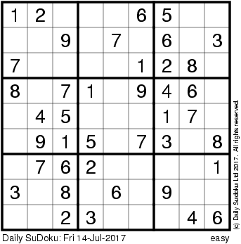 The Daily SuDoku: Fri 14-Jul-2017