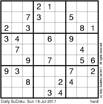 The Daily SuDoku: Sun 16-Jul-2017