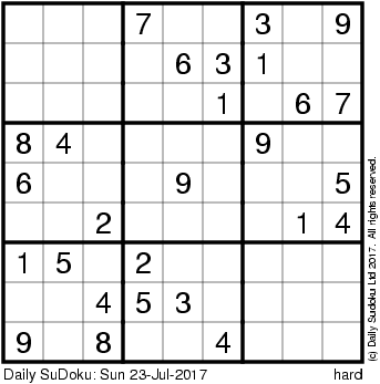 The Daily SuDoku: Sun 23-Jul-2017