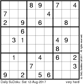 The Daily SuDoku: Sat 12-Aug-2017