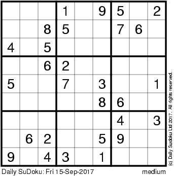 The Daily SuDoku: Fri 15-Sep-2017