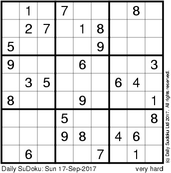 The Daily SuDoku: Sun 17-Sep-2017