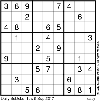 The Daily SuDoku: Tue 5-Sep-2017