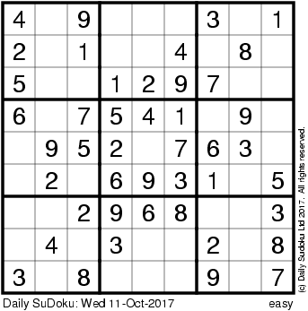 The Daily SuDoku: Wed 11-Oct-2017