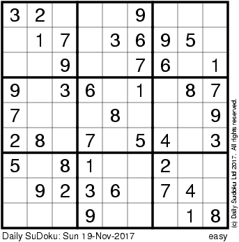 The Daily SuDoku: Sun 19-Nov-2017