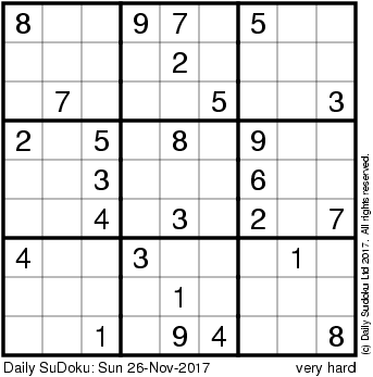 The Daily SuDoku: Sun 26-Nov-2017