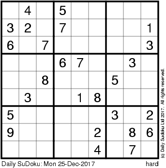 The Daily SuDoku: Mon 25-Dec-2017