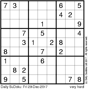 The Daily SuDoku: Fri 29-Dec-2017