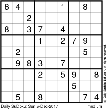 The Daily SuDoku: Sun 3-Dec-2017
