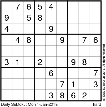 The Daily SuDoku: Mon 1-Jan-2018