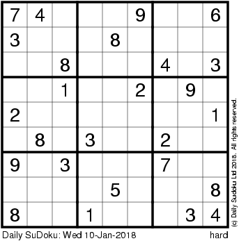 The Daily SuDoku: Wed 10-Jan-2018