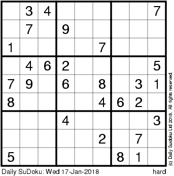 The Daily SuDoku: Wed 17-Jan-2018