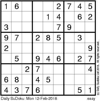 The Daily SuDoku: Mon 12-Feb-2018