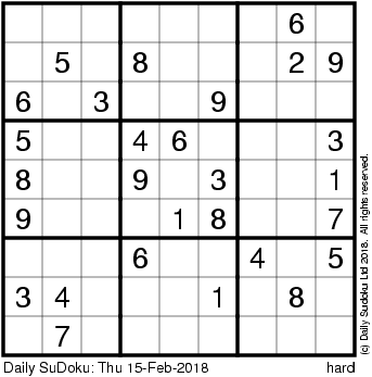 The Daily SuDoku: Thu 15-Feb-2018