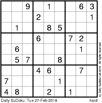 The Daily SuDoku: Tue 27-Feb-2018
