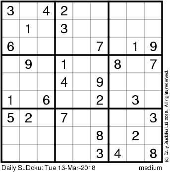 The Daily SuDoku: Tue 13-Mar-2018