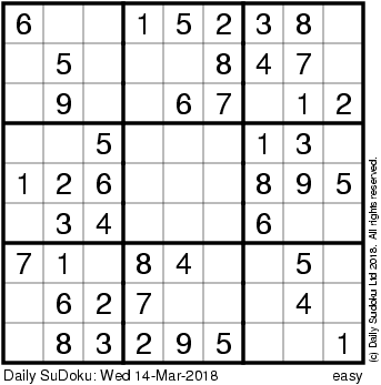 The Daily SuDoku: Wed 14-Mar-2018