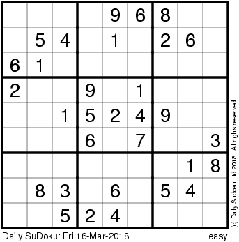 The Daily SuDoku: Fri 16-Mar-2018