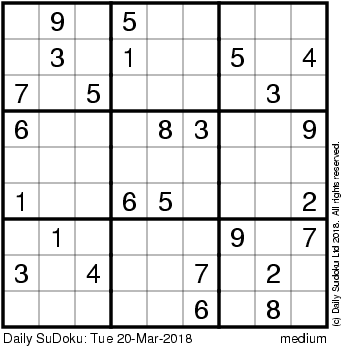 The Daily SuDoku: Tue 20-Mar-2018
