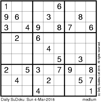 The Daily SuDoku: Sun 4-Mar-2018