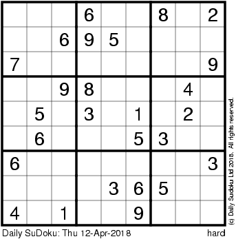 The Daily SuDoku: Thu 12-Apr-2018