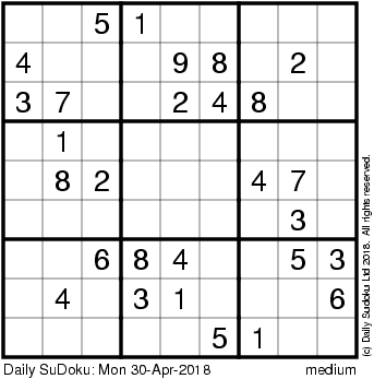 The Daily SuDoku: Mon 30-Apr-2018
