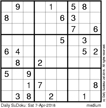 The Daily SuDoku: Sat 7-Apr-2018