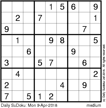 The Daily SuDoku: Mon 9-Apr-2018