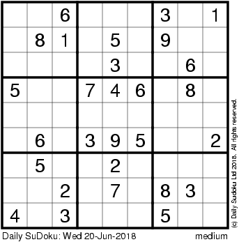The Daily SuDoku: Wed 20-Jun-2018