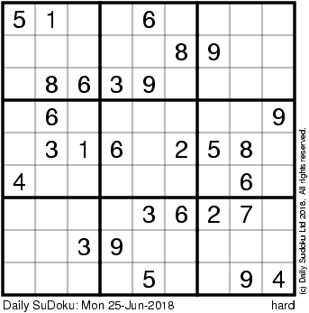 The Daily SuDoku: Mon 25-Jun-2018