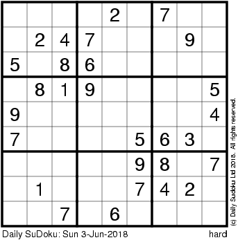 The Daily SuDoku: Sun 3-Jun-2018