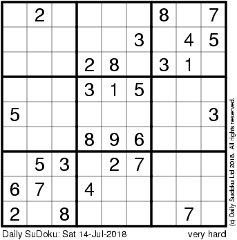 The Daily SuDoku: Sat 14-Jul-2018