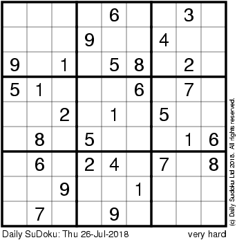 The Daily SuDoku: Thu 26-Jul-2018