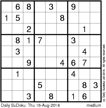 The Daily SuDoku: Thu 16-Aug-2018