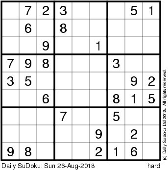 The Daily SuDoku: Sun 26-Aug-2018