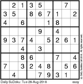 The Daily SuDoku: Tue 28-Aug-2018