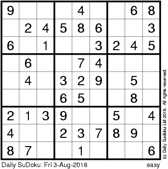 The Daily SuDoku: Fri 3-Aug-2018