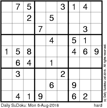 The Daily SuDoku: Mon 6-Aug-2018