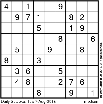 The Daily SuDoku: Tue 7-Aug-2018