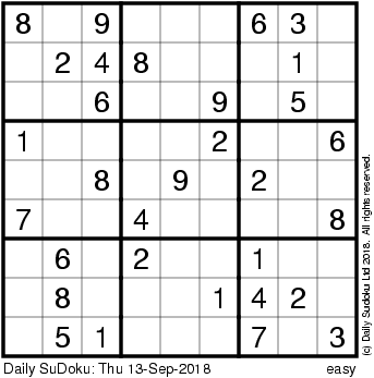 The Daily SuDoku: Thu 13-Sep-2018