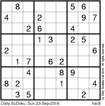 The Daily SuDoku: Sun 23-Sep-2018