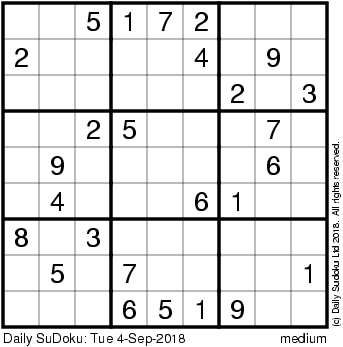 The Daily SuDoku: Tue 4-Sep-2018