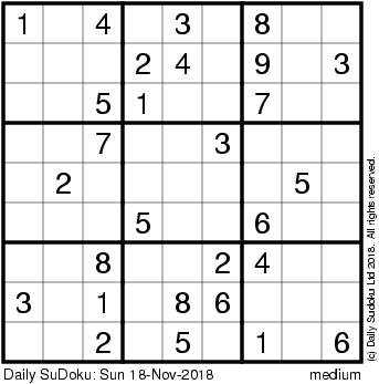 The Daily SuDoku: Sun 18-Nov-2018