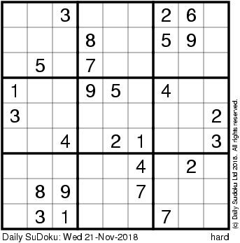 The Daily SuDoku: Wed 21-Nov-2018