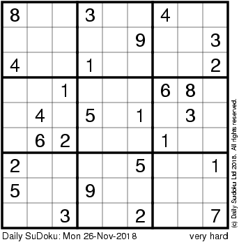 The Daily SuDoku: Mon 26-Nov-2018
