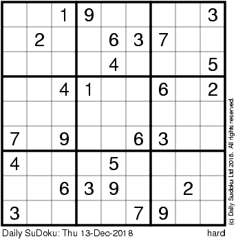 The Daily SuDoku: Thu 13-Dec-2018