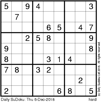 The Daily SuDoku: Thu 6-Dec-2018