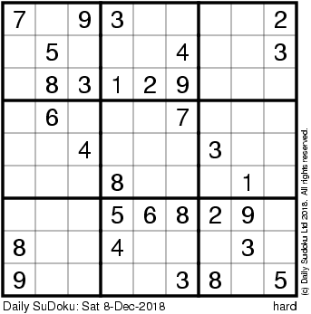 The Daily SuDoku: Sat 8-Dec-2018