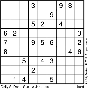 The Daily SuDoku: Sun 13-Jan-2019