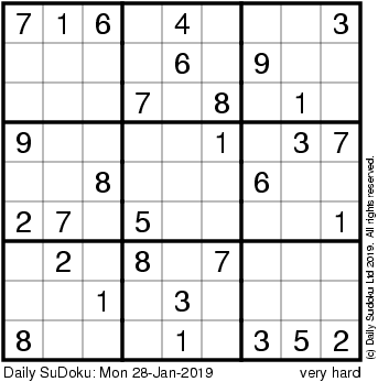 The Daily SuDoku: Mon 28-Jan-2019